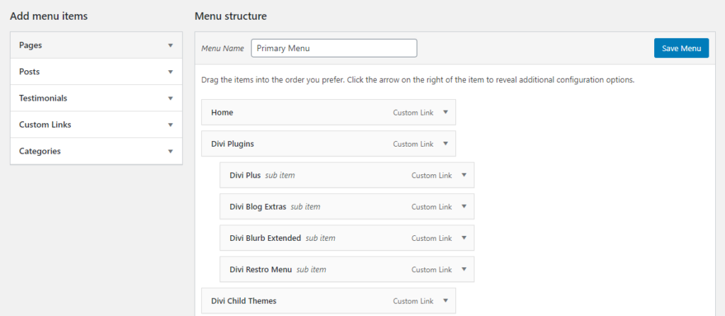 Before we start creating our nested mobile menu for a Divi theme website, it’s a must we create a Primary Menu for sure. In case you haven’t, then the below steps can help you create one.